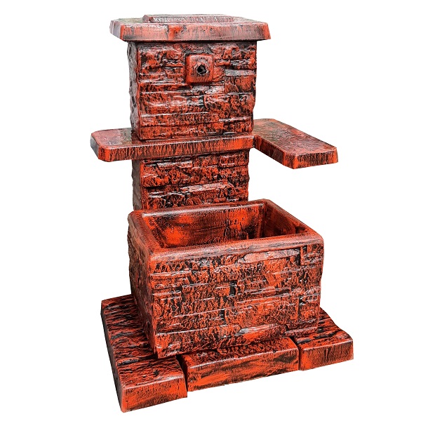 Betonska česma – Velika štanglica (Crno – Crvena) je ukrasni element koji ulepšava sredinu gde se ona nalazi. Ističu je veliko postolje i kapa sa ravnom površinom, i može biti veoma korisna u okviru letnje kuhinje za odlaganje tanjira, čaša, i drugo. Može se kombinovati sa klupama, roštiljima, žardinjerama.